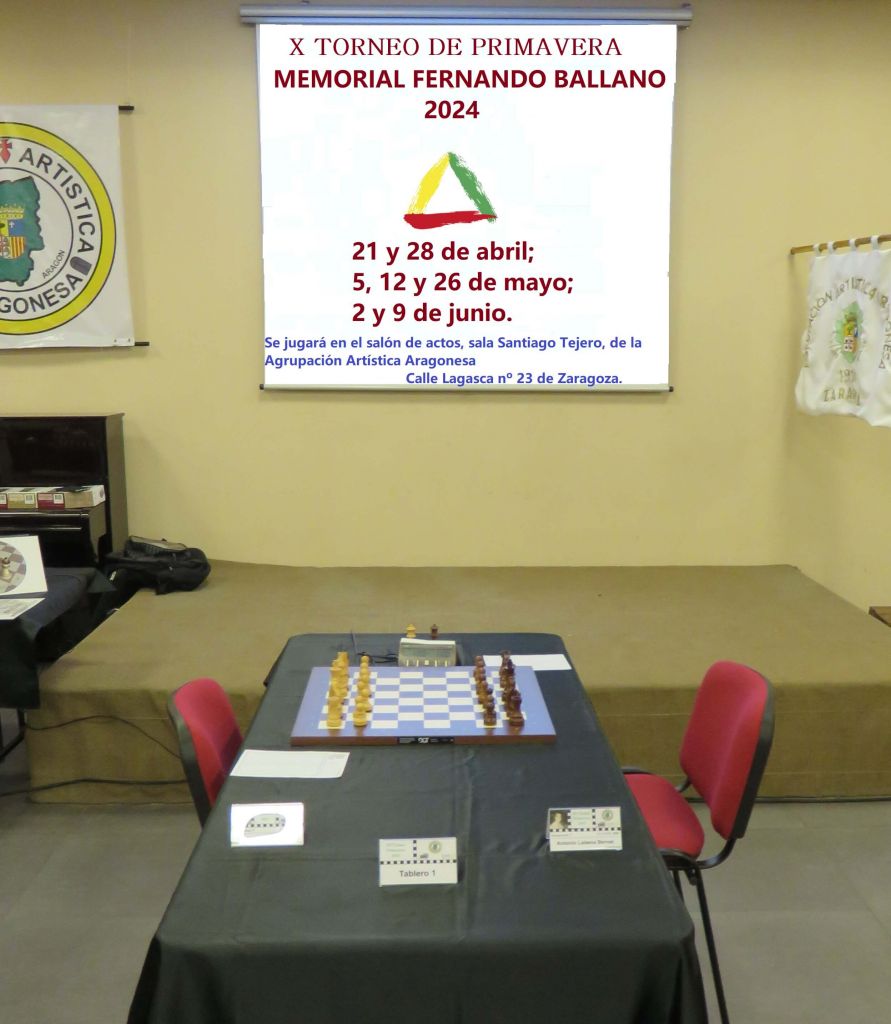 Se jugará en el salón de actos, sala Santiago Tejero, de la Agrupación Artística Aragonesa, situada en la calle Lagasca nº 23 de Zaragoza.
